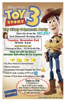 Toy Story 3 Launch Party complete with clowns, look-alike contests, and more. Community partner NY Life produced Child I.D. cards on site, adding a valuable take-away for parents.