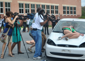 Every 15 Minutes...Someone Dies in a Distracted Driving Accident. We worked closely with a local high school to communicate this message to 2,000 students by staging a car crash in