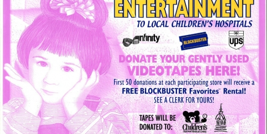 Tape drive for local children's hospital collected 2,500+ movies. In collaboration with local business partners we secured (UPS for delivery; local radio for promotion), the media coverage was incredible! And most importantly, we brought hundreds of smiles to local sick kids.